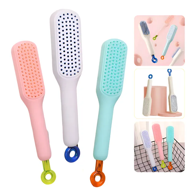 Escova para cabelo autolimpante com cerdas retráteis, design ergonômico e função massageadora. Ideal para todos os tipos de cabelo, ajuda a reduzir frizz, queda e eletricidade estática, garantindo fios mais saudáveis e bem cuidados no dia a dia.