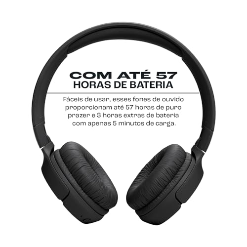 O JBL Tune 520BT entrega o potente som JBL Pure Bass, com graves marcantes e qualidade sonora envolvente. Com Bluetooth, você ouve suas músicas sem fios e com conexão estável. A bateria de até 57 horas garante longas horas de uso, com recarga rápida para mais praticidade. Leve, confortável e com design dobrável, é ideal para acompanhar sua rotina em qualquer lugar, além de permitir personalização do som pelo app JBL Headphones.